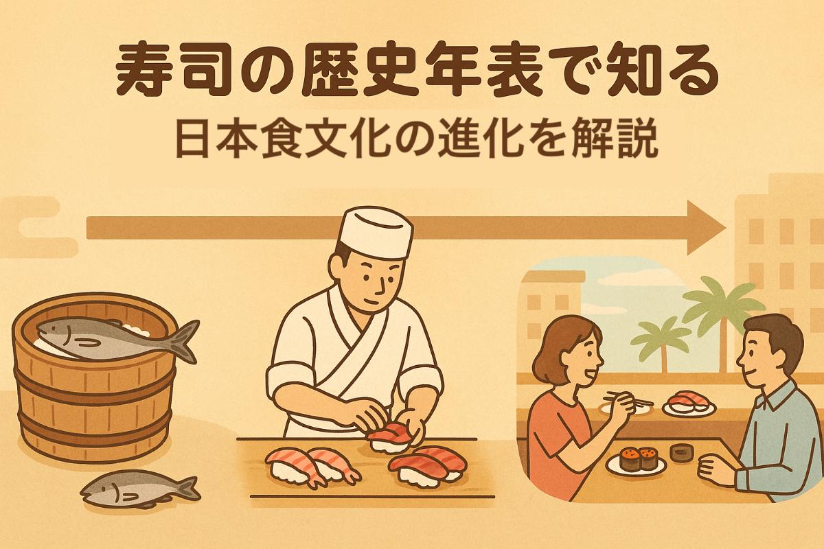 寿司の歴史年表で知る日本食文化の進化を解説日本の食文化を代表する「寿司」は、いまや世界180か国以上で親しまれる存在となりました。しかし、その起源をたどると【奈良時代】にまで遡り、発酵技術を活用した保存食「なれずし」や「鮒寿司」が、各地域で重要な役割を果たしてき […]